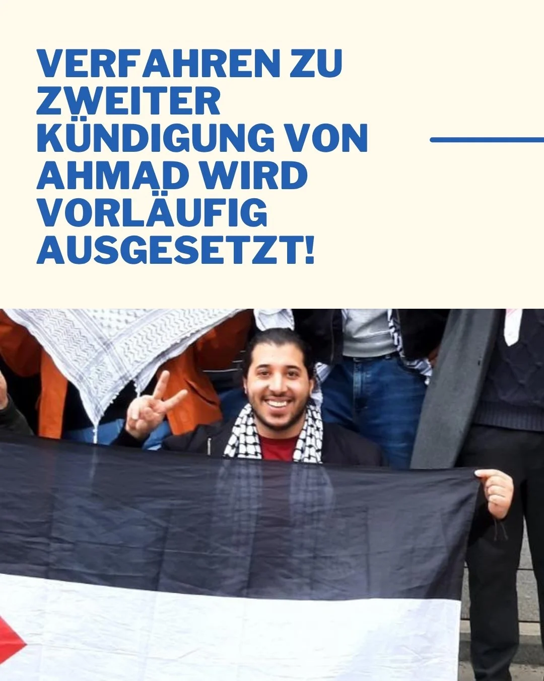 Wir werden alle wichtigen Informationen und Neuigkeiten zu Ahmads Fall rechtzeitig veröffentlichen und bald auch zu einer solidarischen Prozessbeobachtung beim LAG Hamm aufrufen, sobald der Termin feststeht.